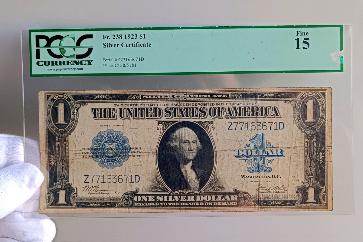 Здравствуйте.Сегодня хотел рассказать вам о долларе сша,а точнее о серебряном сертификате номиналом в один доллар 1923 года. Банкнота довольно необычная и первое,что бросается в глаза это ее размер.Он значительно больше привычного нам доллара более поздних выпусков. В предисловии хотелось сказать,что в сша нет государственного центробанка и правом денежной эмиссии обладают 12 частных банков-членов федеральной резервной системы. Что же такое серебряный сертификат?Серебряный сертификат это вид бумажных денег который выпускался казначейством сша в период с 1878 по 1968 год и обменивался на серебряные слитки и монеты.То есть обеспечивался серебром. Основное изображение банкноты это портрет первого президента Соединенных Штатов Джорджа Вашингтона. Где то слышал,что данную банкноту называют монопольный доллар.Возможно из за изображения на оборотной стороне,которое напоминает рисунок на деньгах игры монополия. В хорошем состоянии доллар 1923 года найти очень не просто,что делает его относител