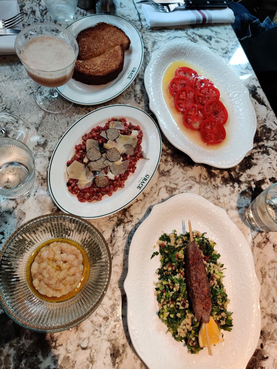 В Grace Bistro появились летние новинки. Первыми делом надо брать тартар из гребешка с киви, понзу и крошкой кешью. Шеф Максим Ершов обещал сделать нарезку моллюска покрупнее и чуть убрать сладость, так тартар станет совершенством летней свежести. Пухлый кебаб из барашка на подушке из табуле радует по всем статьям. Но совершенный чемпион - картофель алиго, неплотное пюре с тремя сырами, грюером, пармезаном, сулугуни и маслом черного трюфеля. Тянется на полметра точно, аттракцион невероятный, ждем рилсы с каждого стола. @foodiscovery