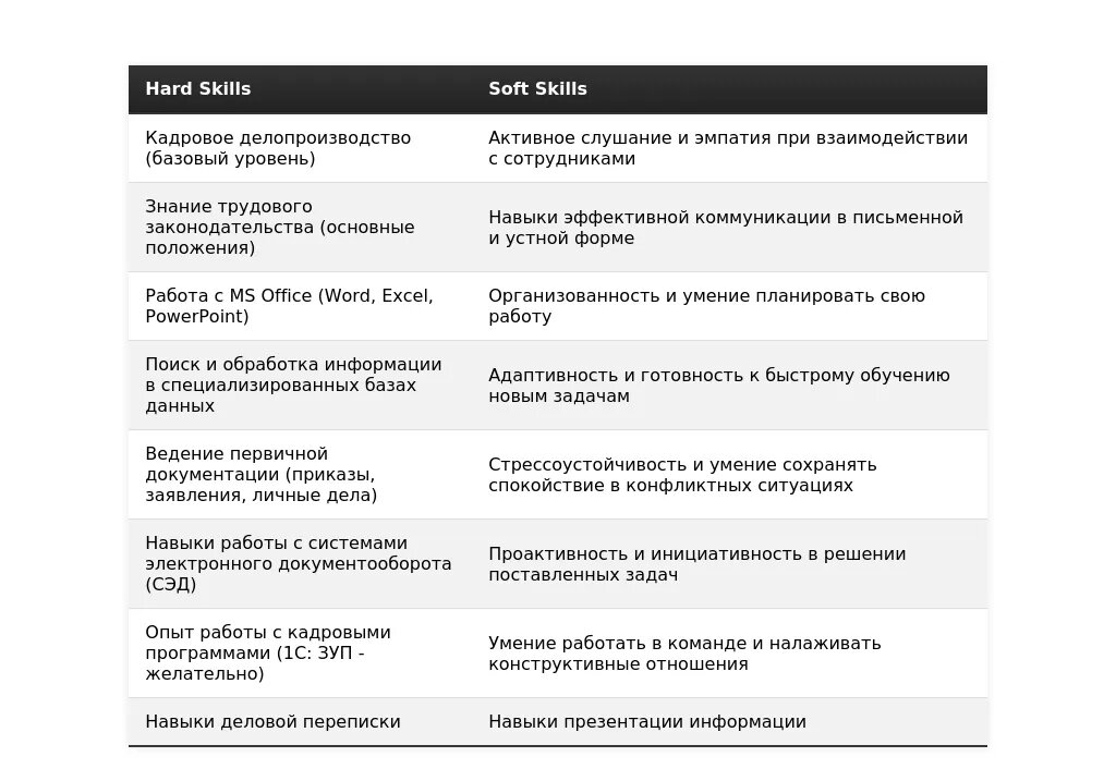 - Как описать специализацию: Уточните, в какой области HR вы специализируетесь (например, подбор персонала, кадровое делопроизводство, обучение и развитие персонала).