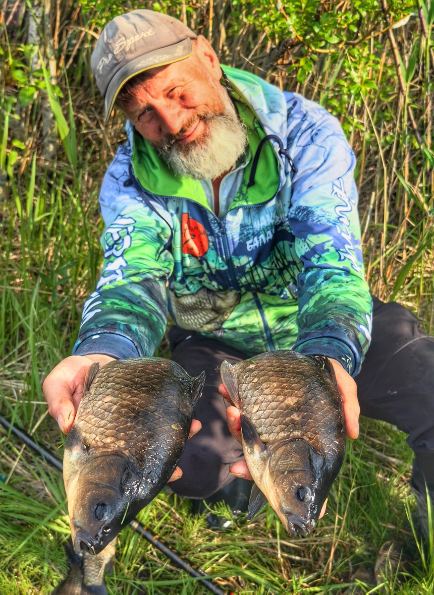 Сильно крупных не поймал в этот раз, но несколько одинаковых карасиков по 39см (кило весом). Всего 15 зачетных и десяток микрушек, которых сразу отправлял обратно.