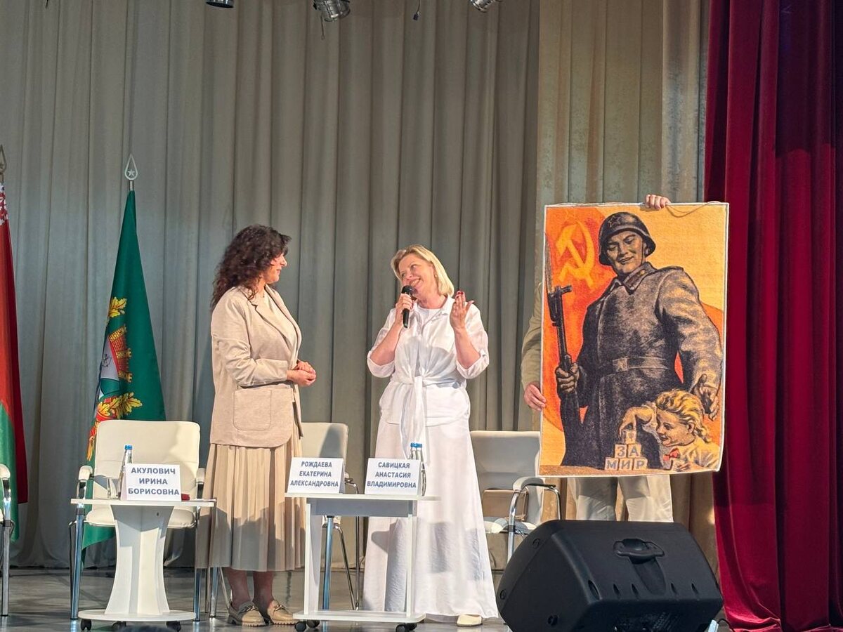 ❤️💚 С любовью из Витебщины После встречи с командой «Белта» начальник главного управления идеологической работы и по делам молодежи Витебского облисполкома Марина Новицкая вручила ковер из лимитированной коллекции «Витебских ковров» к 8️⃣0️⃣-летию Победы #МедиаФорум #МинИнформ #ФокусНаПравду