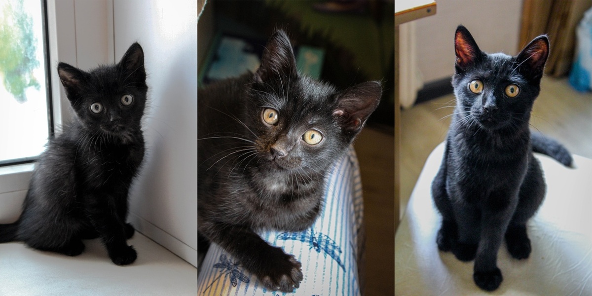 Ровно год назад, 20 мая 2024 года мы с мужем вышли на обычную прогулку, но вскоре вернулись домой с маленьким пищащим комочком. Он был крохой, взъерошенным и очень голодным, с дрожащим хвостиком и очень выразительным взглядом. Абсолютно чёрный, словно кусочек ночного неба! Он мгновенно нас покорил! Я назвала его Ле́тифером, в честь персонажа книги, который тоже был чёрным котофеем. Хотя мы обычно зовём его просто Ферей или Ферюшей. За этот год мы стали настоящей семьёй, научились понимать друг друга с полувзгляда. Он очень ласковый и добрый, никогда не поцарапает и не кусает больно, даже когда играет. Очень любопытный и компанейский – абсолютно всегда рядом с нами, не любит оставаться один и принимает участие во всех наших делах. Он очень общительный и разговорчивый, любит прийти и рассказать о чём-то своём, всегда мурчит, когда просто проходишь мимо или гладишь его. Очень тактильный – любит спать рядышком, положив голову или лапку на руку, или же прижаться боком, когда мы вместе смотр