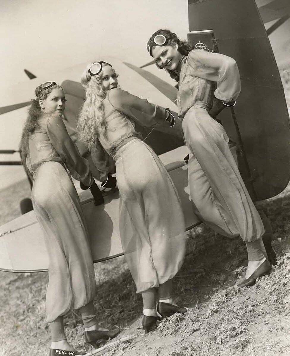 На этой фотографии запечатлены Долорес дель Рио (Мария де лос Долорес Асунсоло Лопес-Негрете), Джинджер Роджерс (Вирджиния Кэтрин Макмат) и Этта Мотен (Этта Мотен Барнетт) в 1933 году на съемках фильма «Полет в Рио» («Flying Down to Rio»). Что примечательного в этой ленте? Идея фильма принадлежит голливудскому продюсеру Мерриану Куперу. О нем говорили, что он обожал три вещи: самолеты, тропики и гигантских горилл (позже Купер снял такие фильмы, как «Кинг-Конг», «Сын Конга» и «Могучий Джо Янг»). В мюзикле «Полет в Рио» Купер сумел объединить практически все свои увлечения. Не нашлось места только для гориллы, зато самолетов и тропиков в фильме предостаточно. Именно Купер предложил снять танец двух тогда еще малоизвестных актеров – Фреда Астера и Джинджер Роджерс. Фильм вошел в историю именно тем фактом, что Фред и Джинджер впервые работали вместе. Впоследствии дуэт снялся еще в десяти фильмах. Хотя актерам эта работа не особенно нравилась, судьба распорядилась иначе. Поклонникам Фреда