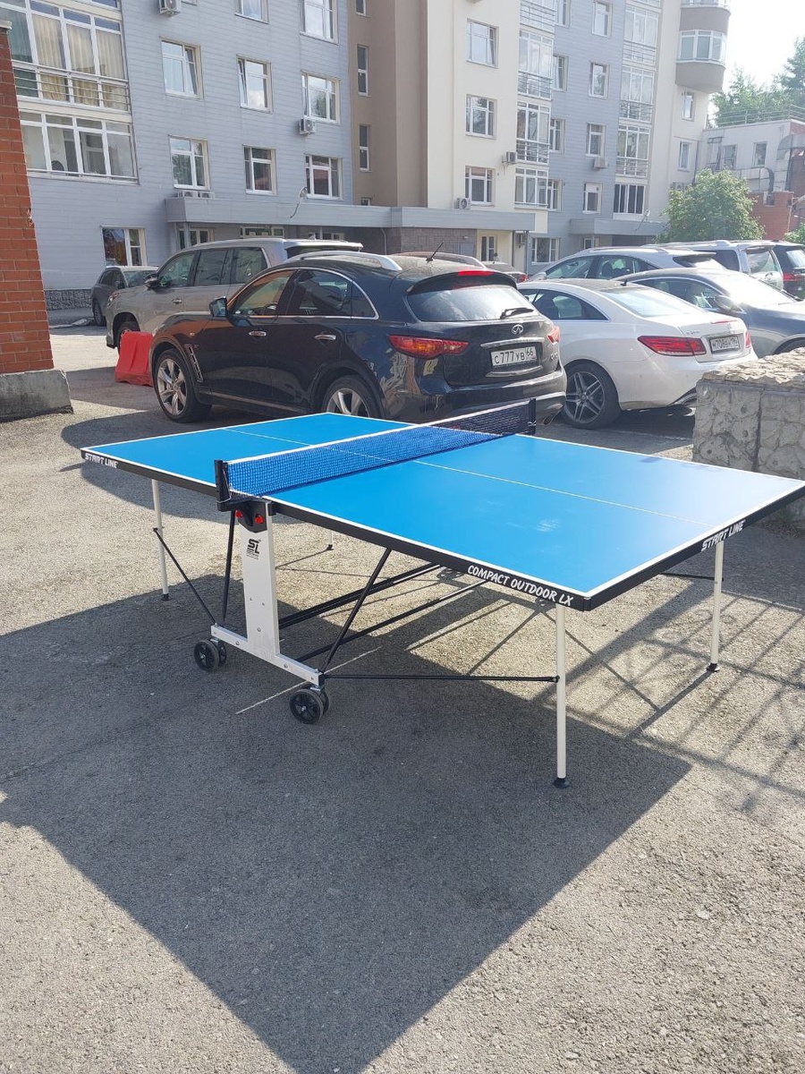 Теннисный стол во дворе Энгельса 15 Екатеринбург. Глупо намекать, что этот всепогодный уличный теннисный стол куплен в Спортдоставке. И так это очевидно всем разумным людям. Хотите такой же ? Они есть у нас, звоните пишите.