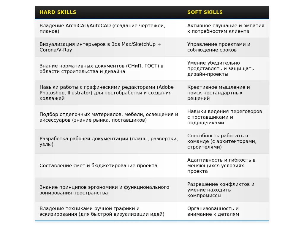 - Ошибка 2: Перечисление навыков без контекста.❌Пример: "Знаю AutoCAD, 3D Max, Photoshop."Почему это плохо: Не показывает, как вы применяли эти навыки в реальных проектах.