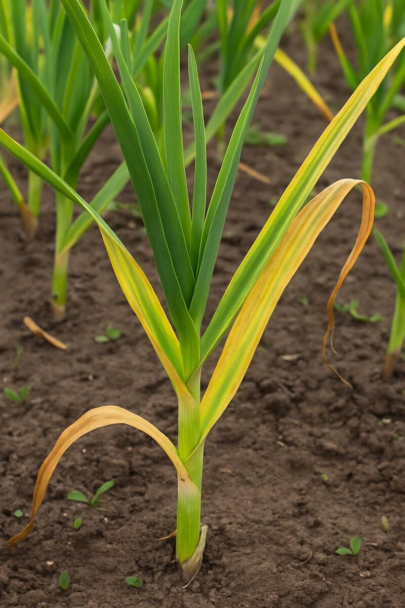 Вы ухаживаете за чесноком, поливаете, рыхлите — а он вдруг начал желтеть… Листья становятся бледными, потом желтеют целыми участками. Знакомо? Уверяю вас — с этим сталкивается почти каждый дачник! Даже опытные огородники ежегодно задают вопрос: “Почему у чеснока желтеют листья и что теперь делать?” 👉 В этой статье расскажу: ✅ 7 самых частых причин пожелтения; ✅ что можно предпринять уже сейчас; ✅ как предотвратить эту проблему на будущий сезон. Простыми словами и по делу — читайте до конца! 🚀 -Когда пожелтение — это нормально? Сначала важное уточнение. Иногда пожелтение — это естественный процесс: ✅ в конце сезона, когда луковица зреет (обычно в июле), нижние листья начинают желтеть — это норма! Но если листья массово желтеют в мае или начале июня, или желтизна идёт с верхушки, или куст останавливается в росте — тут уже есть проблема. -7 причин пожелтения чеснока — и как их решить 🧄 1. Недостаток азота Одна из самых распространённых причин. Весной чесноку очень нужен азот для роста