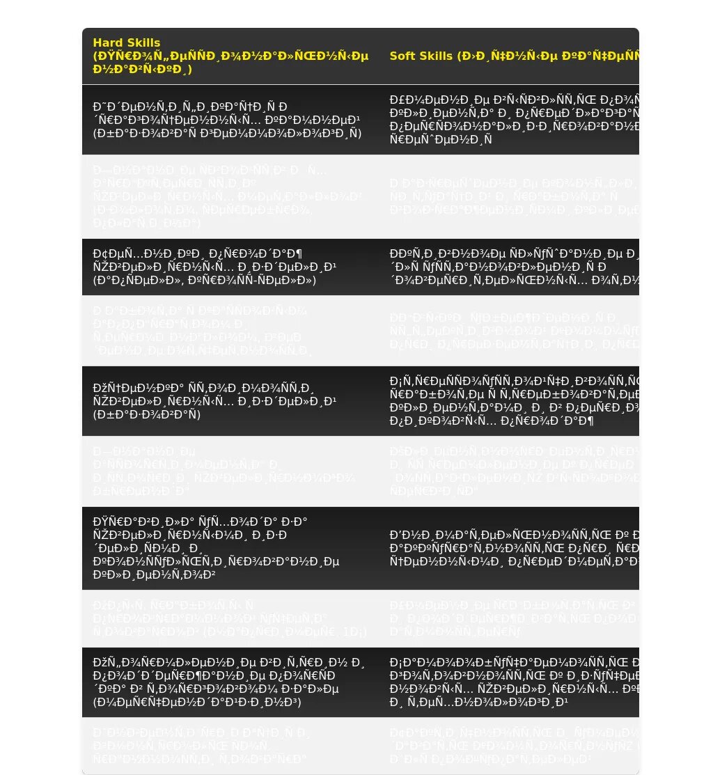 - Выделите ключевые навыки: Перечислите в начале списка навыки, которые наиболее важны для данной вакансии.