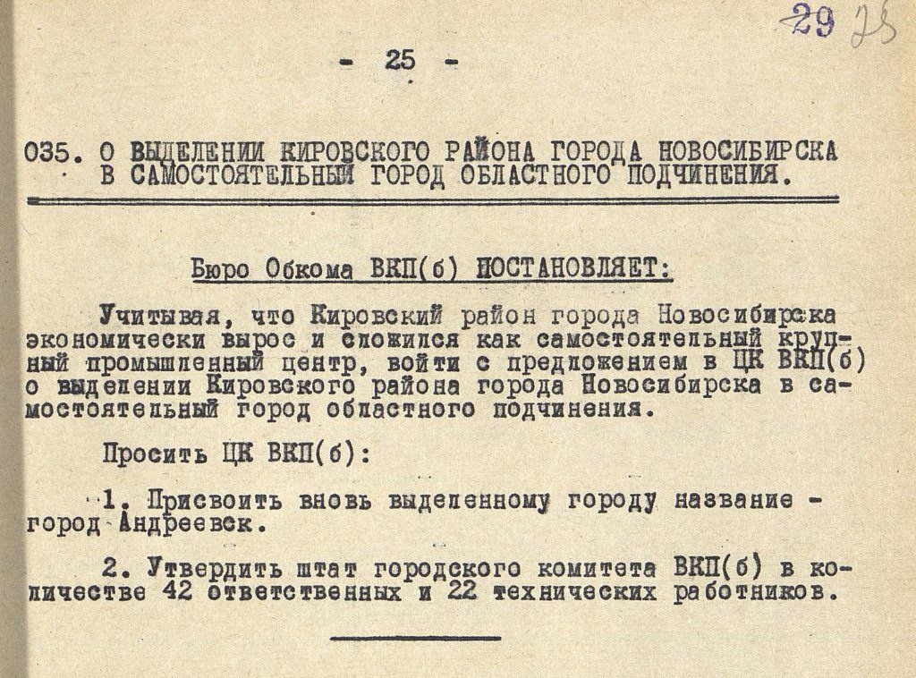 От Кривощёково до Андреевска: как Левобережье чуть не обрело независимость 20 октября 1930 года ВЦИК РСФСР принял постановление «О расширении городской черты гор. Новосибирска Западно-Сибирского края». Согласно этому документу, в состав города вошли шесть населённых пунктов Левобережья, а также Усть-Иня и некоторые сельскохозяйственные земли Правобережья. После этого местные власти образовали Заобскую часть города с районным советом, который разместился в бывшем посёлке Большое Кривощёково. Ранее эти территории относились к Бугринскому сельскому району Новосибирского округа с центром в селе Бугры. Заобский район сразу стал крупнейшим в городе. Его создание стало развитием рекомендаций Экономического совета (ЭКОСО) РСФСР, который в 1930 году предложил строить Новосибирск как совокупность отдельных небольших городов: города на правом берегу Оби, города на левом берегу и города в районе нового железнодорожного моста. В 1931 году был разработан Генеральный план левобережья, предполагавш