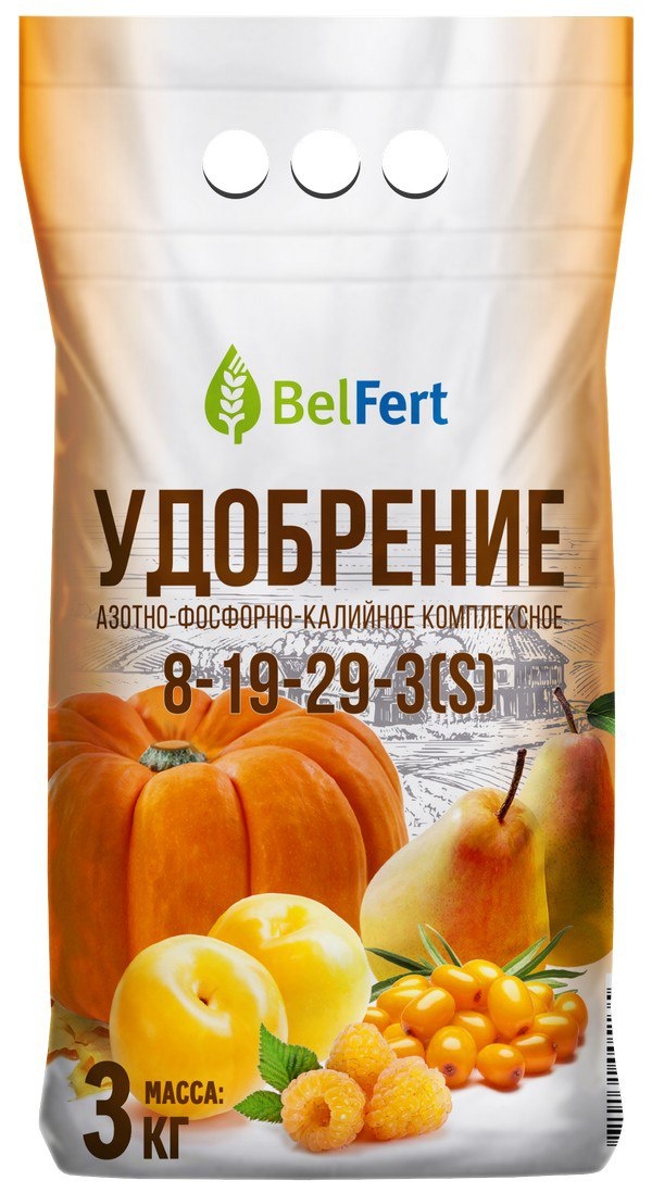 Удобрение BelFert Азотно-Фосфорно-Калийное 8-19-29 – это комплексное минеральное удобрение, идеально подходящее для осеннего внесения. Сбалансированный состав (8% азота, 19% фосфора, 29% калия) обеспечивает растения необходимыми питательными веществами, способствуя их активному росту и развитию.