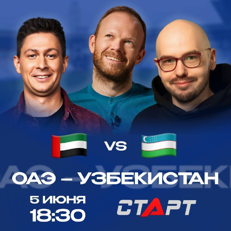 🇺🇿🎙️ Студия перед важнейшим матчем сборной Узбекистана К нам сегодня заглянут классные гости. Легенда национальной команды Узбекистана и экс-защитник «Локомотива» Виталий Денисов, эксперт мирового футбола Вадим Лукомский и ведущий Виталий Мазаев. В такой приятной компании соберемся в 18:30. Проанализируем путь Узбекистана в отборе на ЧМ и оценим шансы на победу в столь важной игре. Узбеки могут выйти на мундиаль уже сегодня 🔥 Ждем вас в эфире телеканала «Старт» и на TVSTART.RU 🖥️ 🛒 Наше приложение в Google Play 💙 Наше приложение в RuStore 🛒 Наше приложение в App Store