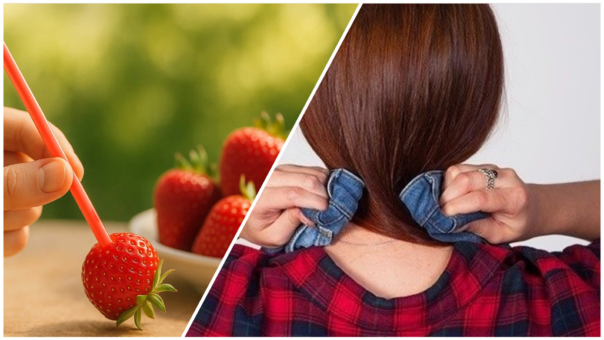 Интернет обожает «гениальные» советы. Где-то увидела в соцсетях — и вот ты уже пробуешь протыкать клубнику трубочкой, резать черри между тарелками и проверять размер джинсов, обмотав их себе на шею. И вроде всё это выглядит удобно и «вау». Но только пока не попробуешь. Вот тебе моя честная подборка «лайфхаков», которые на деле — просто красивая сказка. Если ты тоже думала, что дырка в разделочной доске — чтобы повесить её на гвоздик… то я тебя поздравляю, ты нормальный человек! Но интернет говорит иначе: «Нужно сыпать продукты через неё!». Мол, ничего не просыплется, да и выглядит это красиво. Что вышло: зелень улетела мимо, морковка застряла, а половина отправилась мимо сковородки. В общем — нет. Просто ссыпаем с края доски и живём спокойно. На экране это выглядит шикарно: проткнул клубничку — и она идеальная, как из рекламы. Что вышло: да, хвостик ушёл. Но заодно и полягоды с собой утащил. Зачем мне клубника с дыркой размером с тоннель? Плодоножку руками снять — в три раза быстрее