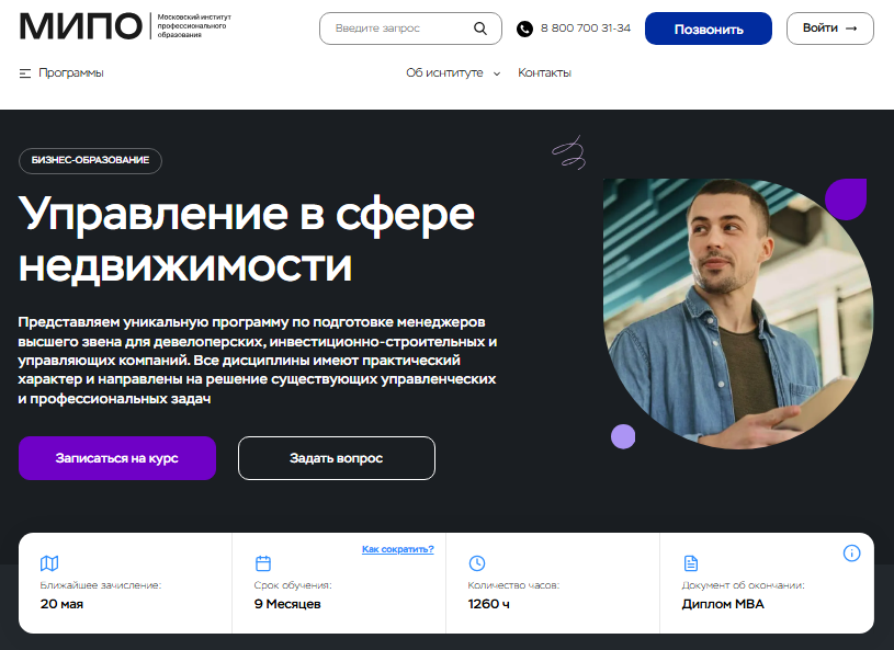 Сайт: mipo.msk.ru/mba/mba_mini/upravlenie-v-sfere-nedvizhimosti