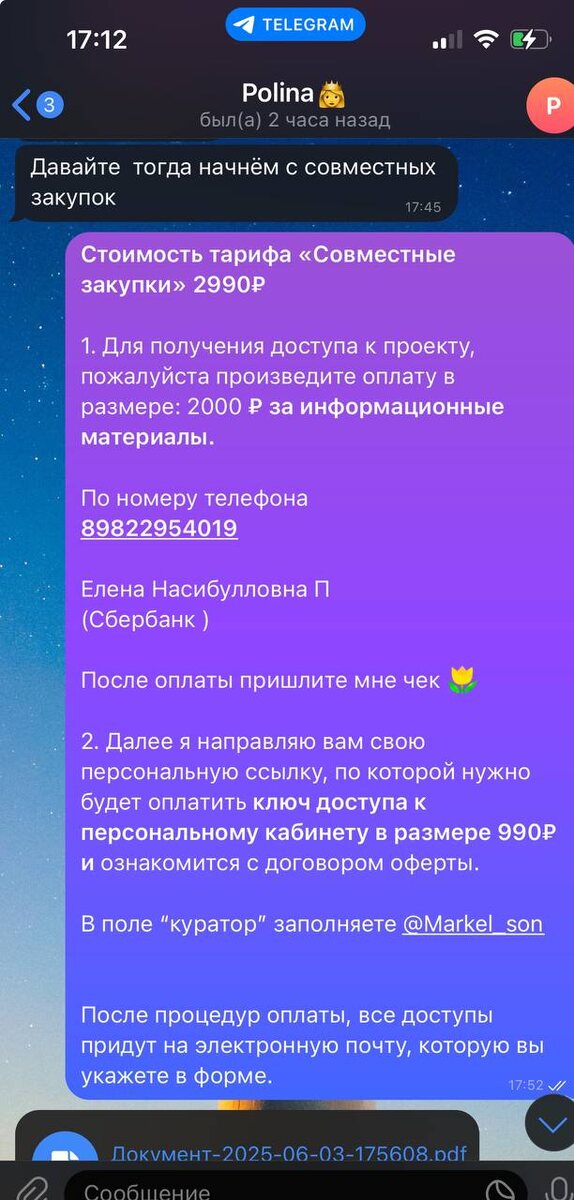 Полина приобрела тариф «Совместные закупки» в течении месяца планирует перейти на тариф «Основной» и перейдет на полный доступ к информации.