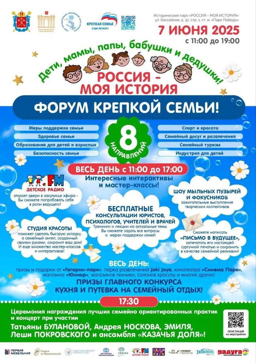 7 июня в Санкт-Петербурге в историческом мультимедийном парке «Россия — моя история» пройдёт первый масштабный городской Форум крепкой семьи! Что вас ждёт?