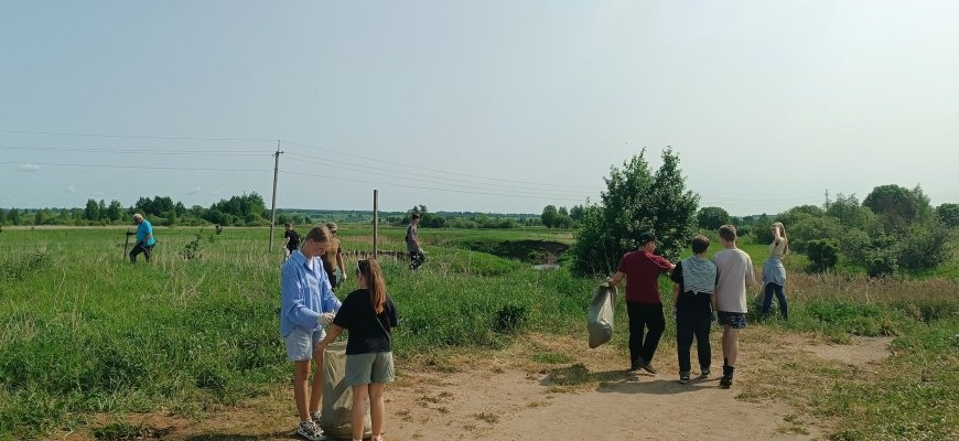 Волонтёры Ёмсненского сельского поселения очистили береговую линию на реке Солоница