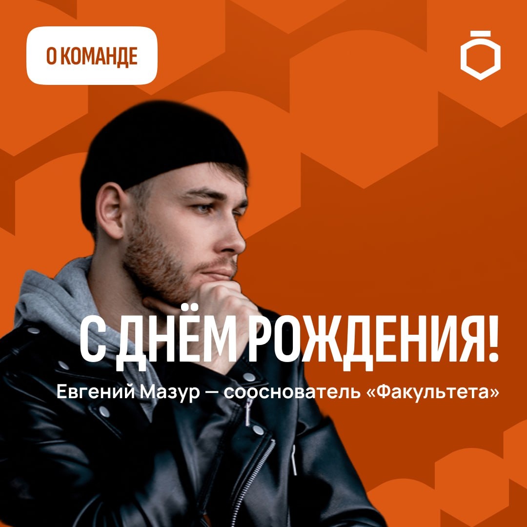 С днем рождения, Евгений Мазур! Сегодня большой праздник у сооснователя «Факультета» Евгения Мазура — в 2023-м году он и Анатолий Крылов создали канал, который помогает людям найти профессию мечты. Желаем, чтобы и мечты Жени тоже были исполнены, а вместе с ними придут здоровье, счастье и успех. С праздником! 🟠 Подписаться на Факультет