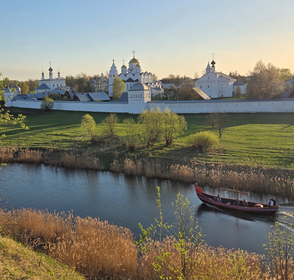 Время в поездке я коротала за сбором информации. Выяснилось, что факт о наличии множества храмов в этом городе оказался практически единственным, что нам было известно о Суздале. Поэтому, чтобы ликвидировать эту брешь в знаниях, прямо из машины получилось заказать обзорную экскурсию-знакомство с городом. Забегая вперёд, нисколько не пожалели об этом, экскурсия с прекрасным гидом Андреем, глубоко погруженным в предмет страстным любителем истории древней Руси, превзошла ожидания. Несмотря на то, что наша поездка состоялась не в разгар туристического сезона, тем не менее выпала на Пасхальную неделю, и паломников все еще было довольно много. Но нам повезло: на экскурсию к Андрею записываются до 45 человек, а наша группа состояла всего из 6, что возвело ее в ранг практически индивидуальной.