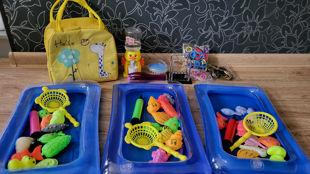 Всем привет 👋 Пока я грузила себя всякими разными мыслями по поводу нашего консилиума в Москве (уже почти пришла в себя), мне дошли все мои заказы 🤗 В общем, пару месяцев назад я зашла в приложение Алиэкспресс и увидела раздел "Одна цена", меня он очень заинтересовал)) цены были от 99 рублей, чтобы заказ прошел, нужно было выбрать не менее трёх товаров. У всего, что я сейчас покажу, стоимость составляла 99 рублей. С чего я вообще всё это заказала🤔 Всё просто)) мне очень сильно приглянулся надувной магнитный бассейн, но так как в одном заказе я могла выбрать только один бассейн, добирала ещё некоторыми позициями)) Бассейн - вообще топчик 👌, взяла их для работы с детьми, помимо того, что можно просто вылавливать рыбок с помощью сачка и удочки, я решила, что буду в него насыпать гидрогелевые шарики и ребёнок может искать руками тех же рыбок, либо ещё что-то. Для 99 рублей комплектация супер: сам бассейн, насос, удочка, сачок, 10 магнитных рыбок, кстати, на вб я такие бассейны нашла от