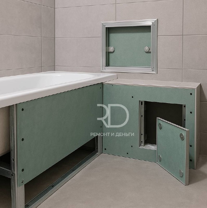 🔹🔹🔹 🔹🔹 🔹🔹🔹🔹🔹🔹🔹🔹 🔧 Как сделать люк под плитку на магнитах и экран под ванну за 30 минут? Легко! Простой, быстрый и недорогой способ сделать аккуратный ревизионный люк и экран под ванну — отличный лайфхак для всех. 📌 Люк скрытого монтажа Идея простая: гипсокартонный люк на мебельных магнитах и металлической пластине. Минимум усилий, никаких дорогих механизмов. Все, что нужно — профиль UD, пара инструментов и немного аккуратности. Люк легко интегрируется в раскладку плитки и держится надежно, при этом всегда под рукой для доступа к коммуникациям. 🚿 Экран под ванну Каркас собирается из влагостойкого гипсокартона и направляющих профилей. Профили крепятся на полиуретановый герметик — без сверления, пыли и шума. С помощью лазерного уровня разметка выполняется точно и быстро, а установка гипсокартона занимает всего несколько минут. Получается аккуратный, ровный экран, полностью готовый под плитку и люк. 🎯 Это решение особенно актуально для санузлов с ограниченным пространс