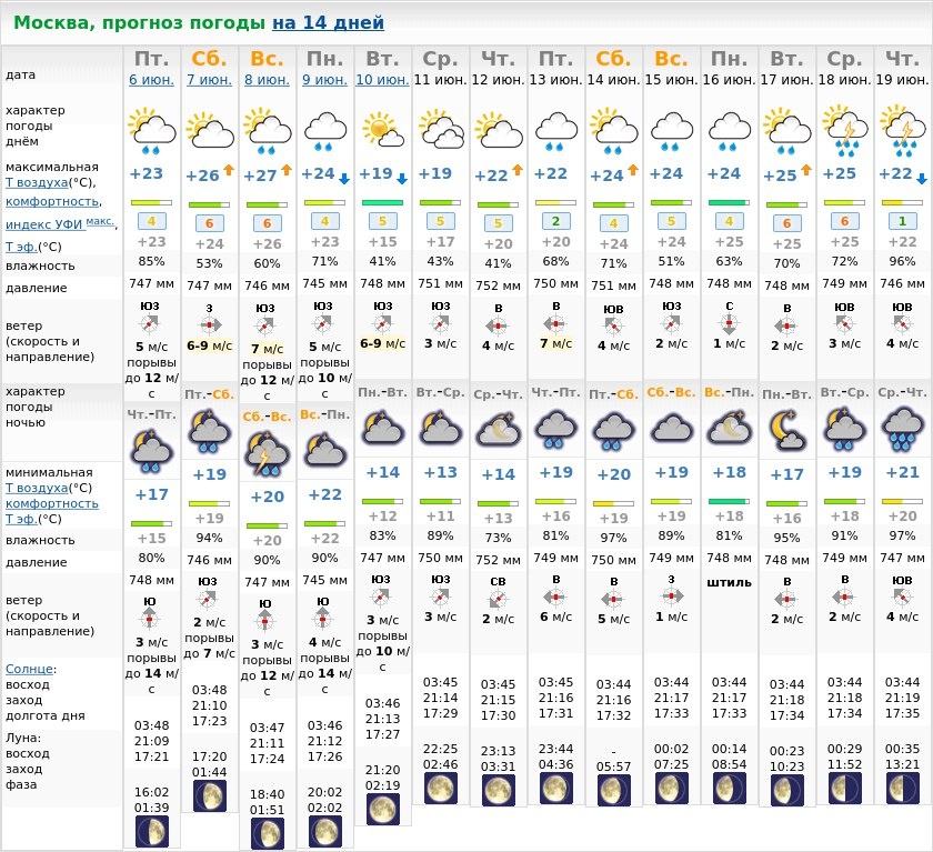 Прогноз погоды на 14 дней