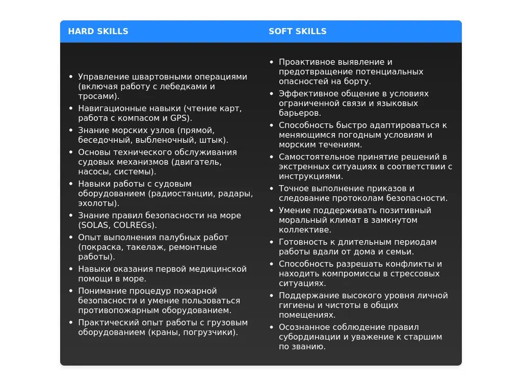 Ключевые навыки и компетенции, релевантные для позиции матроса.