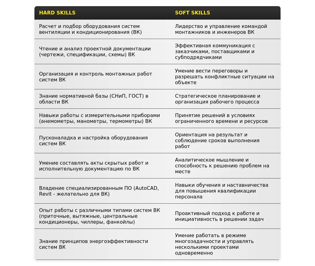 - Умение проводить монтаж и обслуживание систем вентиляции и кондиционирования