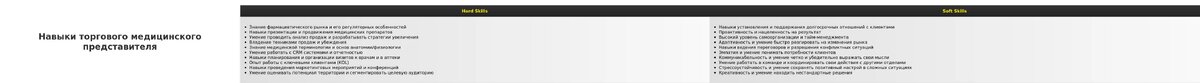 - Что включить:Ключевые навыки и компетенции, релевантные профессии торгового медицинского представителя.