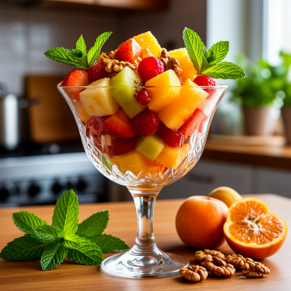 Приветствую вас, мои дорогие кулинарные виртуозы и ценители изысканных десертов! С вами ваш неутомимый шеф, и сегодня мы окунемся в мир ярких красок и восхитительных ароматов, где каждый кусочек - маленькое чудо, а результат - настоящий фейерверк эмоций! Мы будем готовить фруктовый салат с медом и орехами – легкий десерт для всей семьи, который станет вашим кулинарным талисманом! Забудьте про скучные десерты, которые лишь вызывают зевоту. Я знаю, как превратить ваши повседневные перекусы в настоящий праздник вкуса! И поверьте, этот рецепт - настоящая находка для тех, кто ценит простоту, скорость и, конечно же, потрясающий вкус. Более того, я поделюсь с вами парой секретных ингредиентов, которые вознесут ваш салат на совершенно новый уровень! Готовы к фруктовой революции? Тогда поехали! 🚀 Почему этот салат - ваш идеальный десерт? Что нам понадобится (и мои секретные ингредиенты!)? Для приготовления этого волшебного салата вам потребуется: Пошаговый рецепт - проще простого, но эффектно!