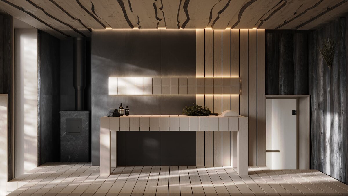 Дерево — это традиционный и очень популярный материал для отделки бань. Оно создает особую атмосферу уюта и тепла. За счет разнообразия текстур и оттенков, деревянные поверхности можно адаптировать под любой стиль.