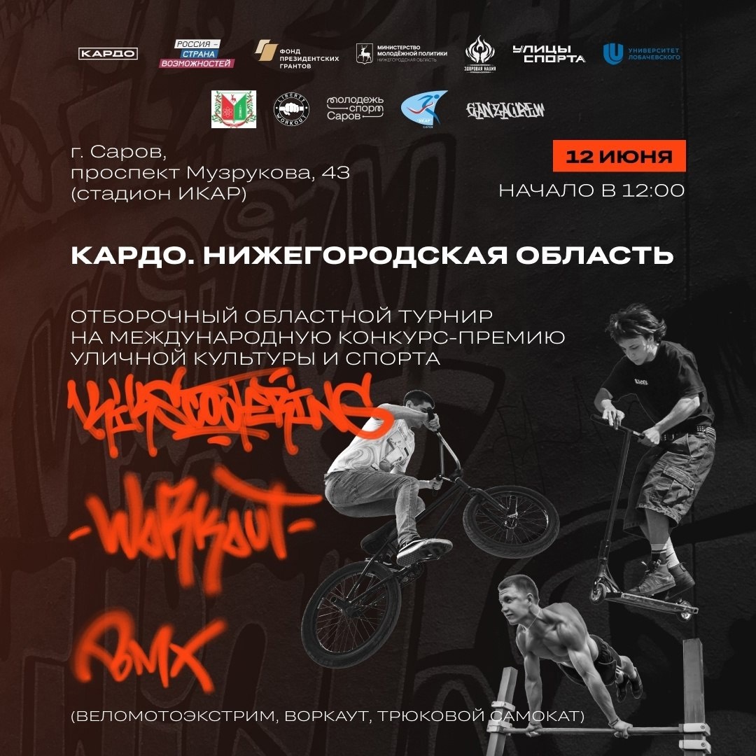 ↗ Экстрим, трюки, хип-хоп, воркаут и всё такое 12 июня в 12:00 на тадионе "Икар" пройдёт отборочный турнир на региональный этап международной конкурс-премии уличной культуры и спорта КАРДО Соревнования пройдут по четырём направлениям: -трюковой самокат -веломотоэкстрим -воркаут -хип-хопх Для участия в соревнованиях необходимо заполнить форму: https://forms.yandex.ru/cloud/683862c6068ff0ec07b6f225/ Победители каждого из направлений попадут в финал регионального этапа премии, который пройдет 22 июня в Нижнем Новгороде на "Горадроме".