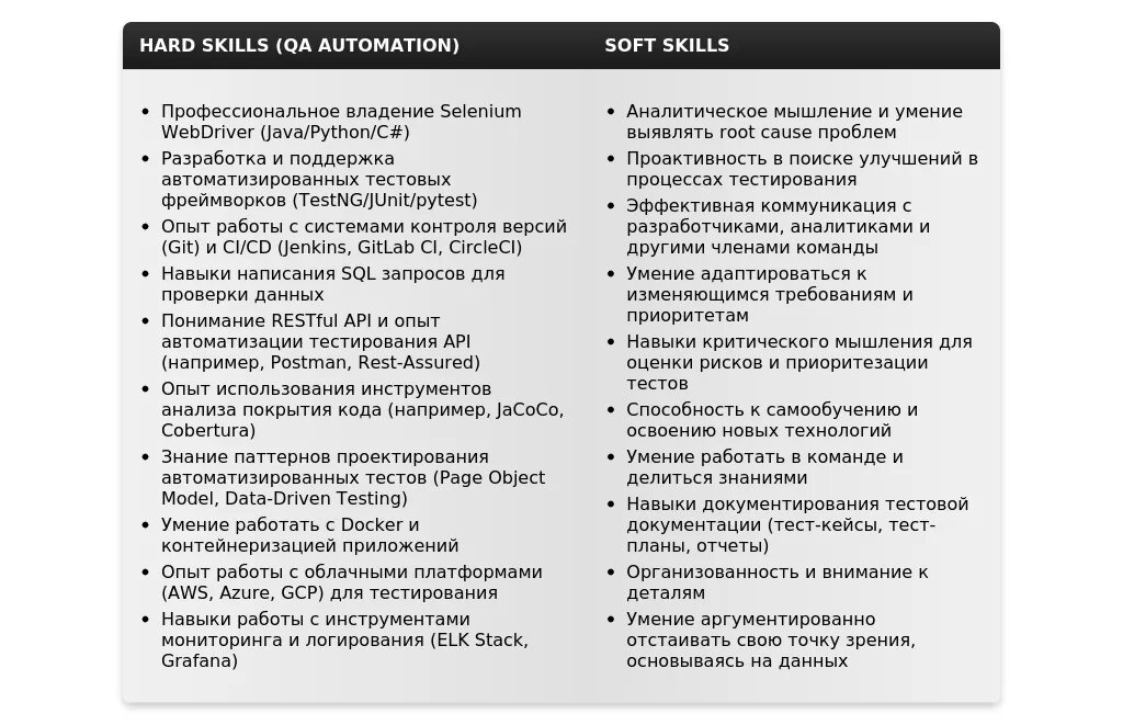- Что категорически не стоит писать:Общие фразы, не относящиеся к QA Automation (например, "коммуникабельный", "ответственный").