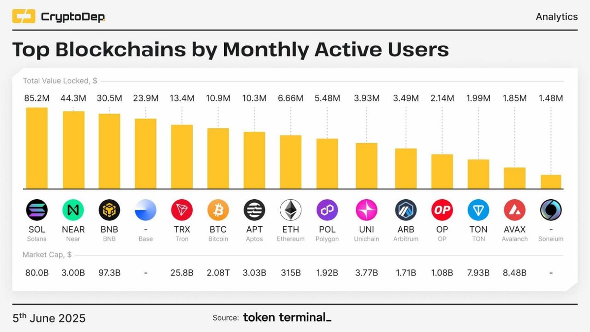 🔸Лучшие блокчейны по числу активных пользователей в месяц