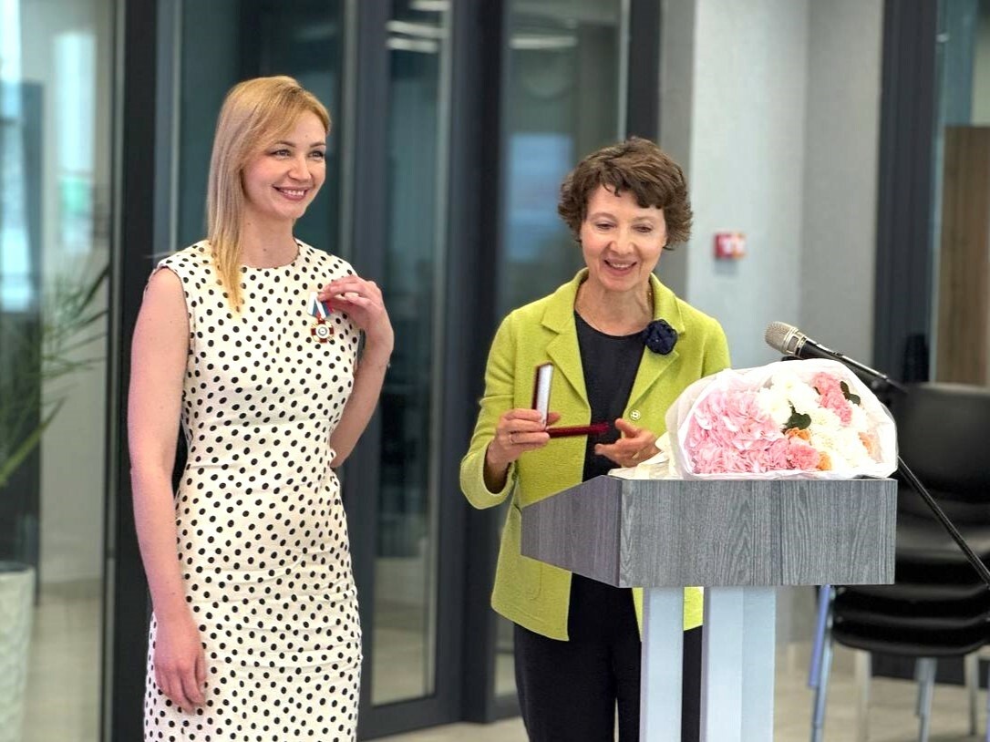 Награду – почетный знак «Донор костного мозга» Ирина Сергеева получила из рук генерального директора НМИЦ гематологии, главного внештатного специалиста - гематолога Минздрава России Елены Паровичниковой во время торжественной церемонии в Межвузовском студенческом кампусе.