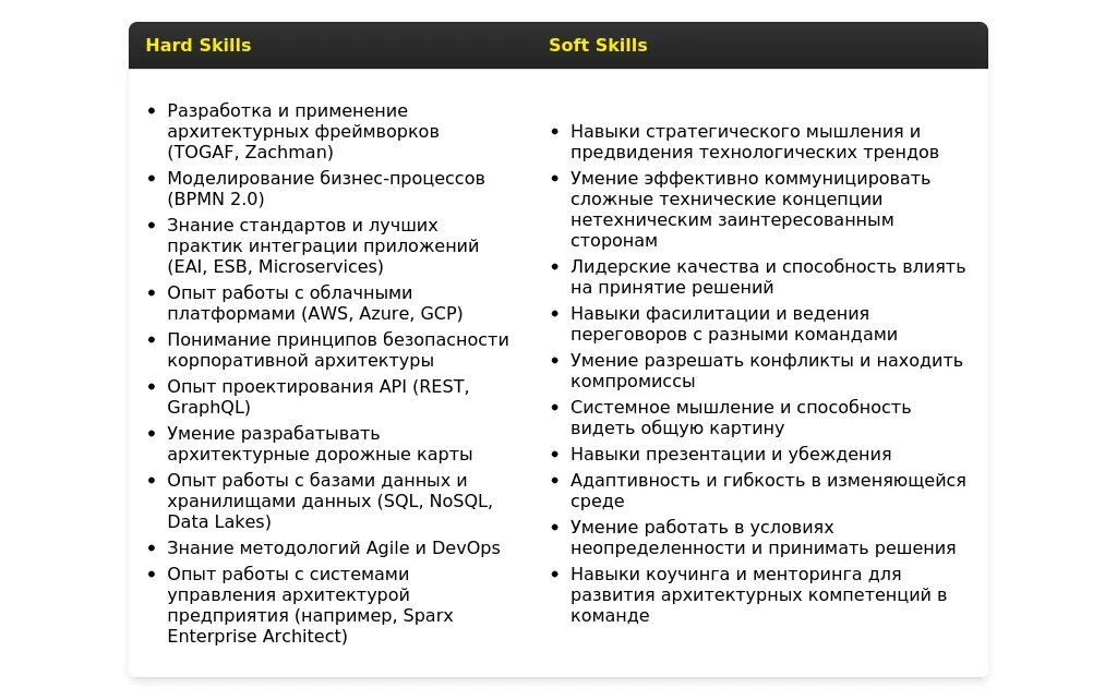 - Перечислите ключевые навыки и инструменты, которыми вы владеете (например, ArchiMate, TOGAF).