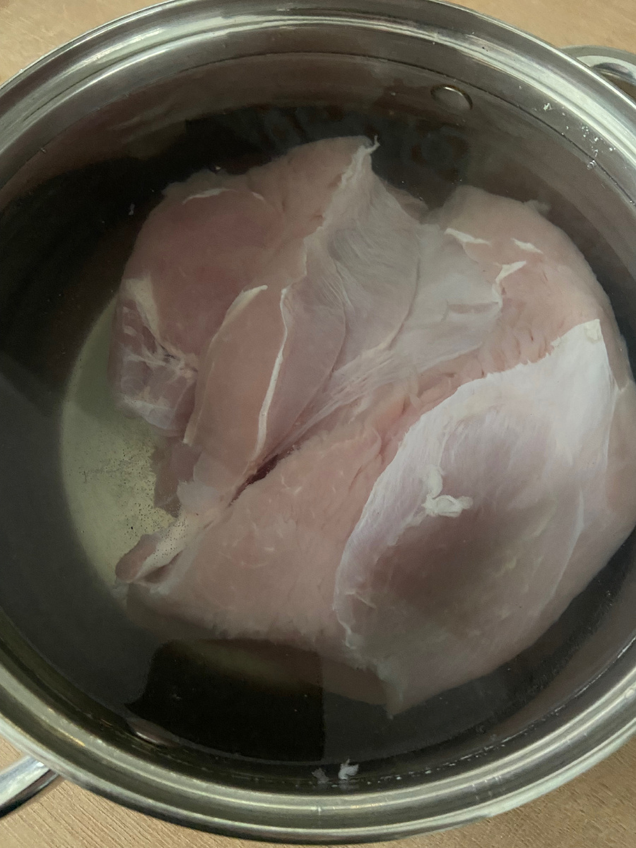 Я очень долго шла к такому рецепту. К такой жизни. Просто трансформация сознания. Вроде бы и понимаешь, что колбаса — это зло, вред и почти отсутствие мяса в составе, но всё равно покупаешь, выискиваешь состав более-менее и покупаешь. Давно хотела научиться делать мясо для бутербродов или для салатов типа Цезаря. Нашла чудесный рецепт. И так загорелась попробовать здесь и сейчас, что курьер Самоката вёз мне куриную грудку ближе к 11 вечера. Куриная грудка вышла отменной. Настолько, что не осталось ни фото, ни самой грудки (в течение дня она была уничтожена). Муж требовал повторения мясного праздника. Я решила повторить эксперимент, но с более полезным мясом — с индейкой. Итак, для приготовления вяленой грудки индейки мне потребовалось: В емкость налила литр воды, насыпала туда 4 столовых ложек соли, перемешала и положила туда грудку. Дала ей два часа полежать в солевом растворе. По истечении двух часов хорошо промыла грудку от соли, просушила бумажными полотенцами. Подготовила