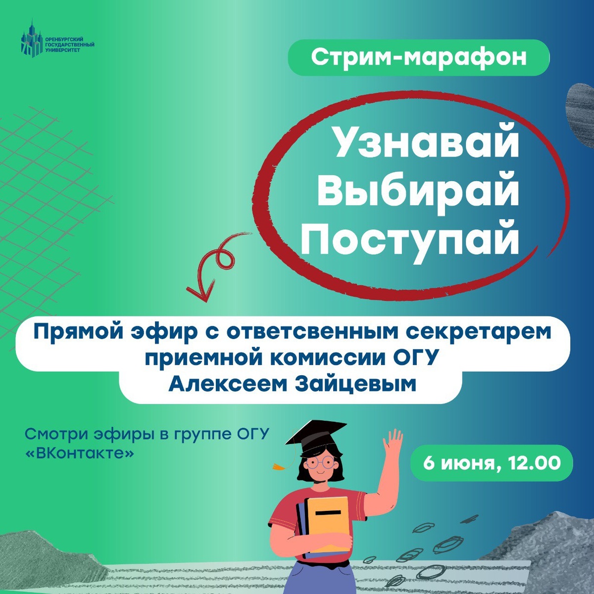 Подводим итоги стрим-марафона «Узнавай.Выбирай.Поступай» с ответственным секретарем приемной комиссии ОГУ Алексеем Зайцевым.