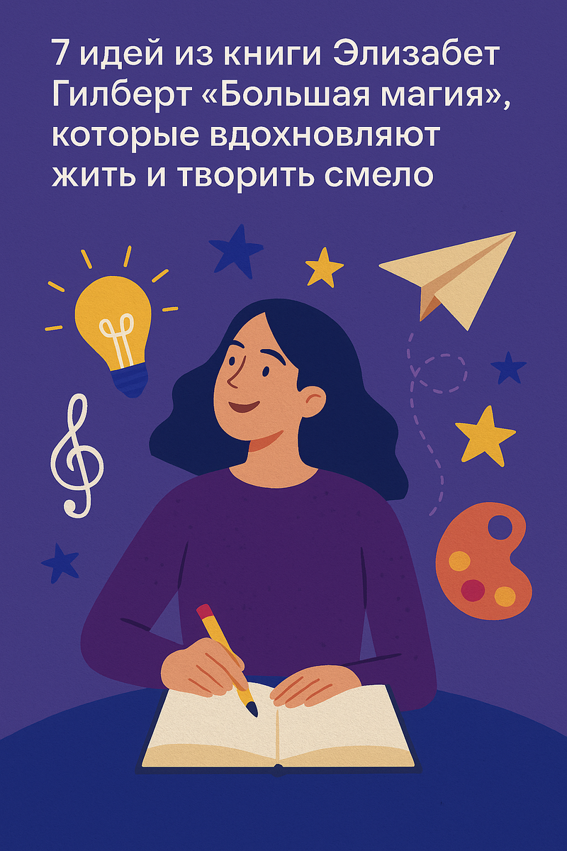Элизабет Гилберт — автор мирового бестселлера «Есть, молиться, любить», но её книга «Большая магия» — это уже не просто личная история. Это мягкое, но мощное руководство по творчеству, страхам и свободе быть собой. Это книга для всех, кто хочет писать, рисовать, петь, создавать, придумывать, но боится, откладывает, сомневается. Гилберт не учит, как добиться успеха. Она делится — как творить легко, без надрыва и самобичевания. Вот 7 главных идей из этой невероятно честной и вдохновляющей книги. Суть: