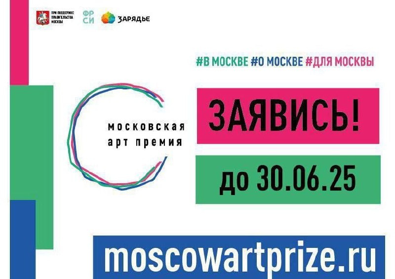 Стартовал прием заявок на соискание 6-й Московской Арт Премии!🔥 Премия в области современного искусства «Московская Арт Премия» призвана выявить и поощрить авторов уникальных творческих высказываний. Она адресованы тем, кто в период с 01 января 2024 года по 30 июня 2025 года создал произведения в Москве, о Москве, для Москвы. ☀️Премии присуждаются за наиболее талантливые, отличающиеся новизной и оригинальностью произведения литературы, музыки, театра, кино и изобразительных видов искусства, получившие общественное признание и ставшие явлением культурной жизни столицы. ❗️Заявки принимаются до 30 июня 2025 года. 📌В каждой номинации призовой фонд составляет: Лауреат I степени: 3 млн рублей; Лауреат II степени: 2 млн рублей; Лауреат III степени: 1 млн рублей. 📌Подать заявку можно здесь #artnews@chainedeart