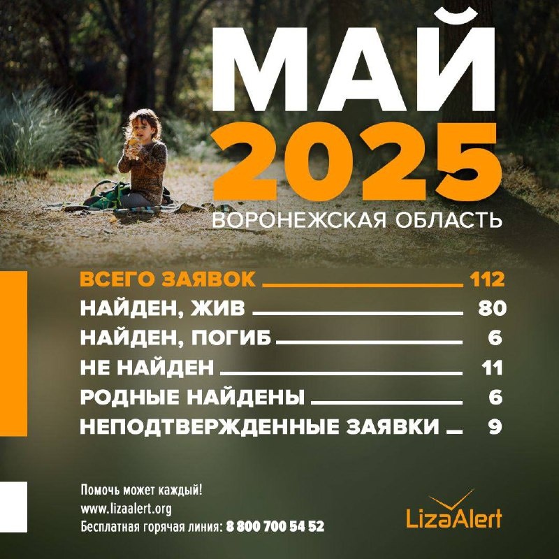 За май в поисково-спасательный отряд «Лиза-Алерт» поступило 112 заявок о пропавших людях, поделились в организации.