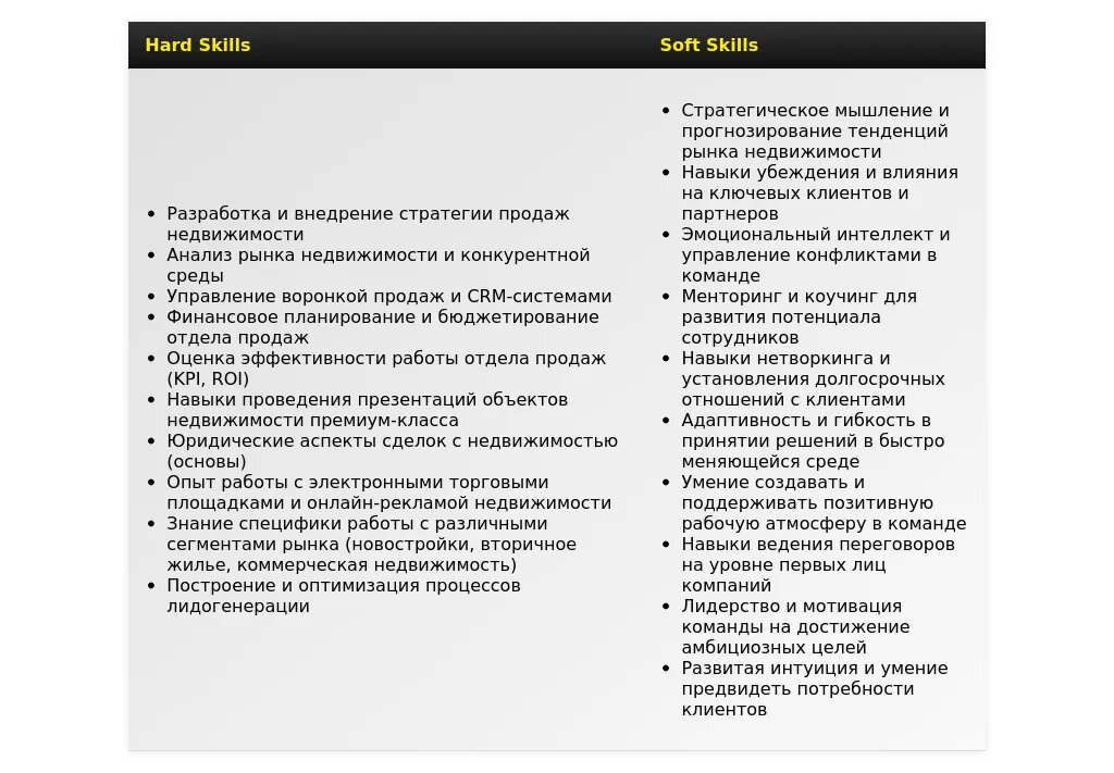 - Навыки продаж: Работа с VIP-клиентами, ведение переговоров на высшем уровне, заключение сделок с недвижимостью премиум-класса.