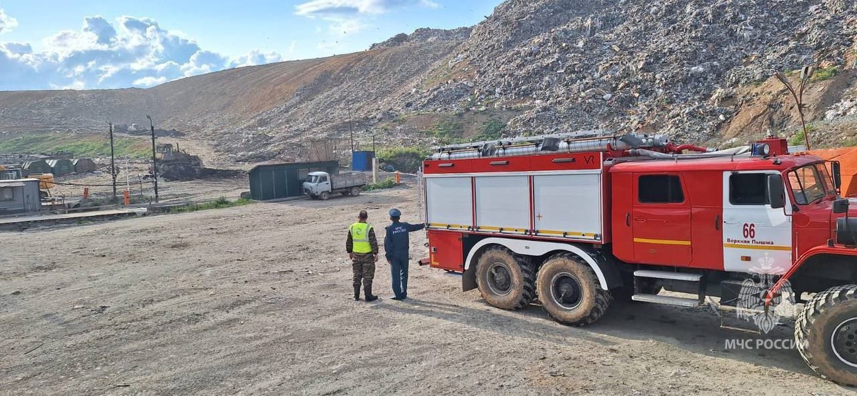 📍В Верхней Пышме специалисты МЧС России завершили проливку тлеющих очагов на полигоне ТБО