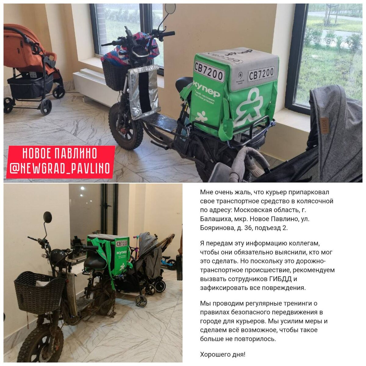 Интересный ответ сервиса Купер на парковку электромопеда в колясочной на Бояринова Теперь вы знаете куда обращаться 🤭 НОВОЕ ПАВЛИНО Прислать новость|Подписаться🎈
