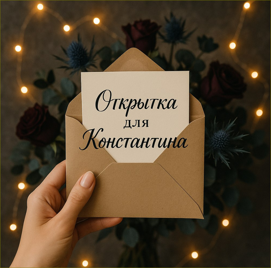 Как иногда хочется сделать неординарное поздравление для знакомых и близких, удивить коллег. В такие минуты нейросети могу креативно помочь поздравить именинника. Все зависит от пожеланий, вкусов и предпочтений. ПРОМТ: Красивая женская рука держит конверт открытый конверт, в нем вставлена открытка с красивой надписью: "Открытка для Константина". Задний фон картинки - огоньки от гирлянды и цветы в брутальном мужском стиле. Вариантов много: можно фон оформить в виде пляжа на мальдивах, или открытку держит космонавт в открытом космосе, а может знакомый офисный кабинет, который преобразился в футуристический и его держит андроид. ПРОМТ: Красивая женская рука держит конверт открытый конверт, в нем вставлена открытка с красивой надписью: "Открытка для Татьяны". Задний фон картинки - Мальдивы с деревянными домиками, пляж, пальмы и гамак. Заветную мечту сына, который мечтает стать космонавтом, можно реализовать с нейросетью. Отправить пламенный привет из открытого космоса. ПРОМТ: Красивая ру