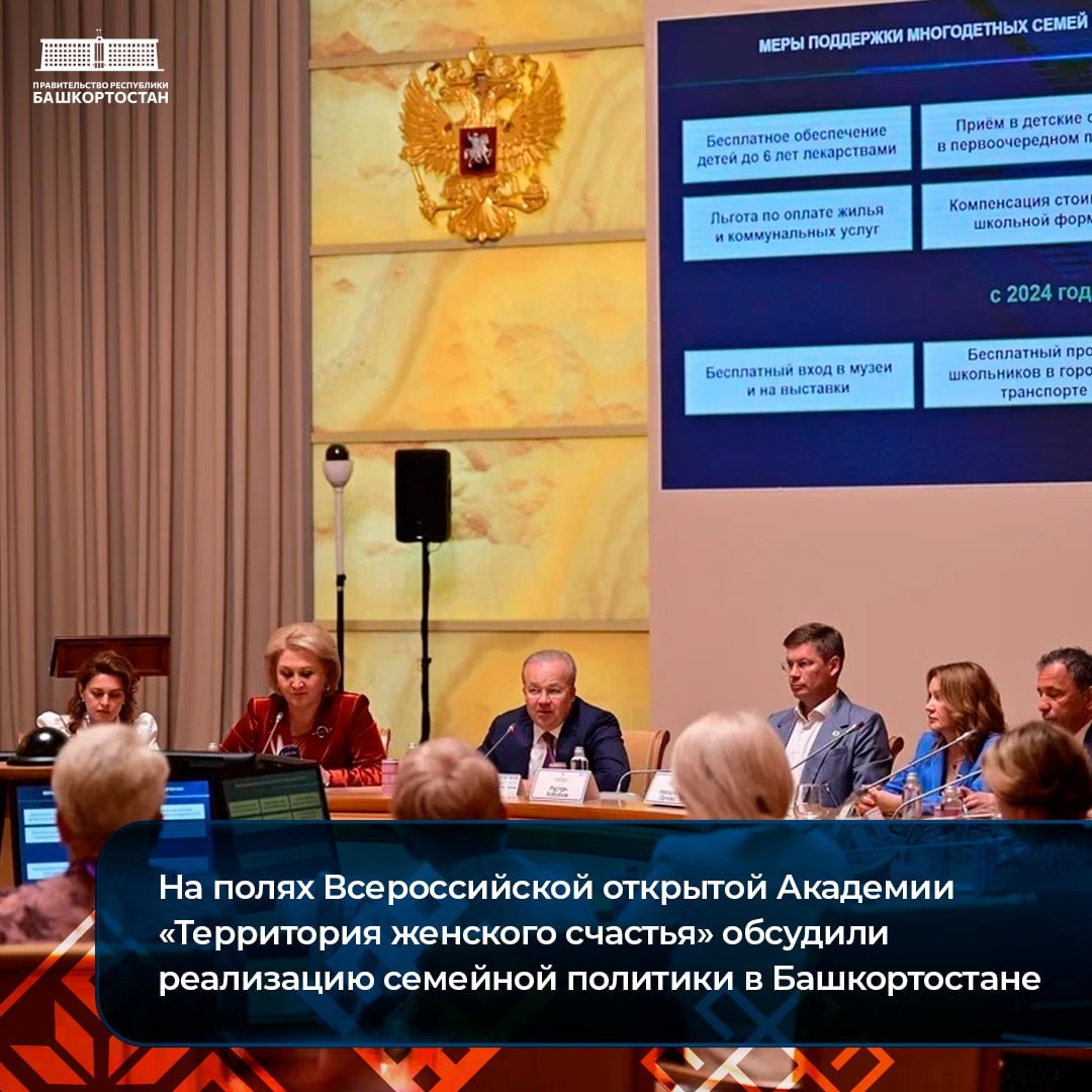 На полях Всероссийской открытой Академии «Территория женского счастья» обсудили реализацию семейной политики в Башкортостане ✔️ В рамках Всероссийской открытой Академии «Территория женского счастья» в уфимском конгресс холле «Торатау» состоялась окружная семейно-демографическая конференция «Проект Семья», в ходе которой обсудили реализацию социальной политики в отношении многодетных семей. 🗣️ Премьер-министр Правительства Республики Башкортостан Андрей Назаров отметил, что значительная часть новых федеральных мер поддержки многодетных семей реализуется в регионе уже четверть века. Так, с 2000 года дети до 6 лет бесплатно обеспечиваются лекарственными препаратами и в первоочередном порядке местами в детских садах. Для семей с низкими доходами организовано безвозмездное питание в школах и колледжах, предусмотрены льготы по оплате жилья и коммунальных услуг, а также компенсируются затраты на приобретение школьной формы и принадлежностей. — Сейчас прорабатываем постепенное снятие крите