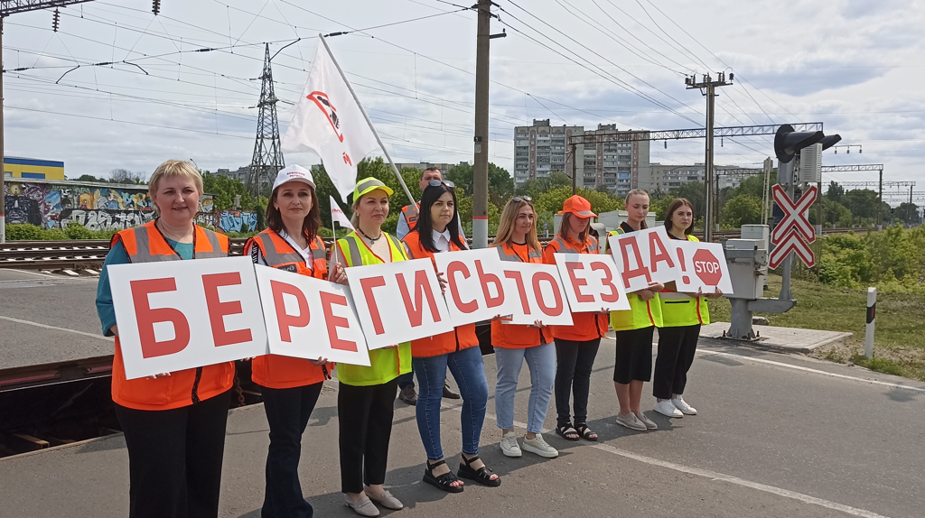 Железнодорожники вместе с волонтерами провели флэшмоб. Выстроившись в линию, они подняли плакаты с буквами, из которых сложился призыв: «Берегись поезда!». Через переезд на станции Орджоникидзеград курсировал локомотив с закрепленными на бортах баннерами.
