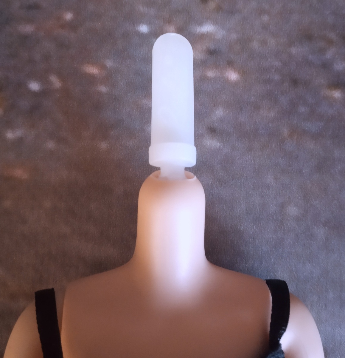 Вот так кстати, выглядит шейный шарнир, если снять голову. Это сделать очень просто и не травматично для пластика куклы, шея и голова не повреждаются при снятии: