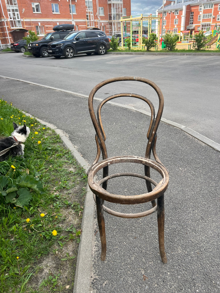 И снова у меня крутая находка — и, конечно, я не могу не поделиться этой историей с вами, мои дорогие! На днях, проходя мимо обычной городской помойки, я увидела рядом с контейнером кое-что необычное — симпатичный венский стул. Да, сидения у него не было, но сам стул выглядел крепким! Кое-где перепачканный шпаклевкой - возможно, его использовали как какую-то подставку про ремонте. А после - вынесли к помойке за ненадобностью. Даже не понимая, какую ценность выкидывают с глаз долой! Не раздумывая, я унесла его сначала в багажник машины, а потом — домой. Точнее, на одну из квартир, которую я сдаю посуточно и где в тот день не было гостей. Но есть ванна и балкон для просушки, потому что стул я намеревалась перво-наперво как следует отмыть! Там я сразу взялась за дело. Конечно, до профессиональной реставрации мне далеко, но я просто решила хорошо помыть стул. Для начала обработала его доместосом, потом просушила и пошкурила поверхность. И вот тут меня ждала настоящая неожиданность: по