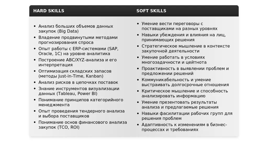 - Конкретные навыки: Например, "Аналитик отдела закупок (анализ рынка, прогнозирование)", "Аналитик отдела закупок (ведение переговоров, снижение затрат)"
