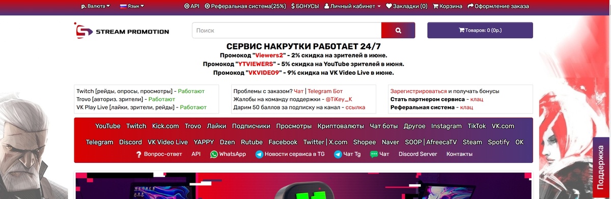 - Непревзойденная оперативность поддержки стримеров. Техническая поддержка, доступная через встроенный чат на сайте, работает в режиме 24/7. Вам незамедлительно окажут помощь в случае возникновения проблем с заказами или предоставят срочные разъяснения. Помимо чата, для оперативной обратной связи также доступны популярные мессенджеры, электронная почта и специальная форма на сайте.