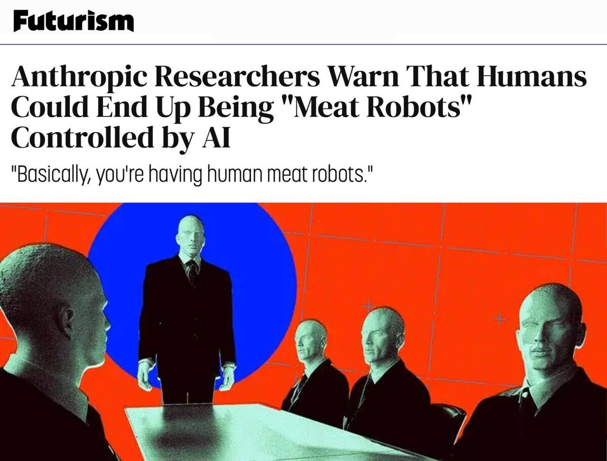 Люди могут превратиться в «мясных роботов». Ведущие разработчики ИИ из Anthropic заявили, что если развитие нейросетей не замедлится, то через несколько лет останется только физический труд. «Человеки» станут живыми машинами, управляемыми ИИ с помощью камер, очков и наушников. NeuroFlux #ИИ #Технологии #наука #нейросети #ИнтернетСвобода #ИскусственныйИнтеллект